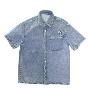 Men's Summer Casual Short Sleeve Denim Shirt with Embroidery